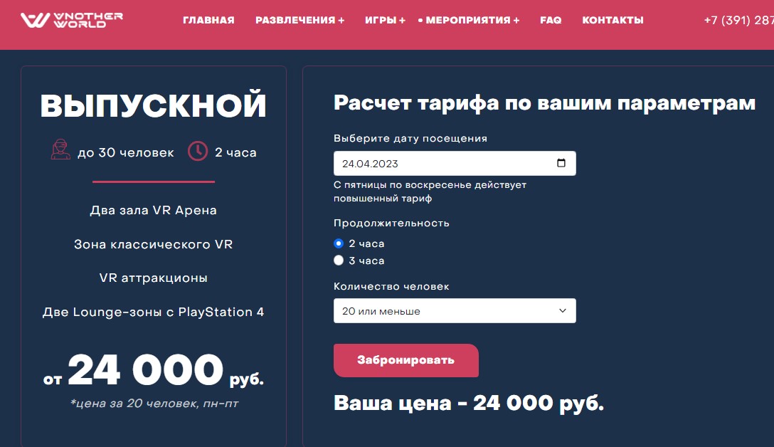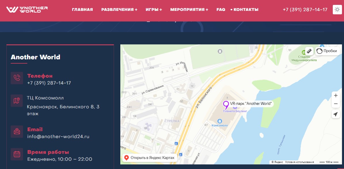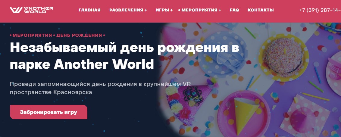 Создание корпоративного сайта Развлекательного клуба виртуальной реальности в Красноярске - another-world24.ru