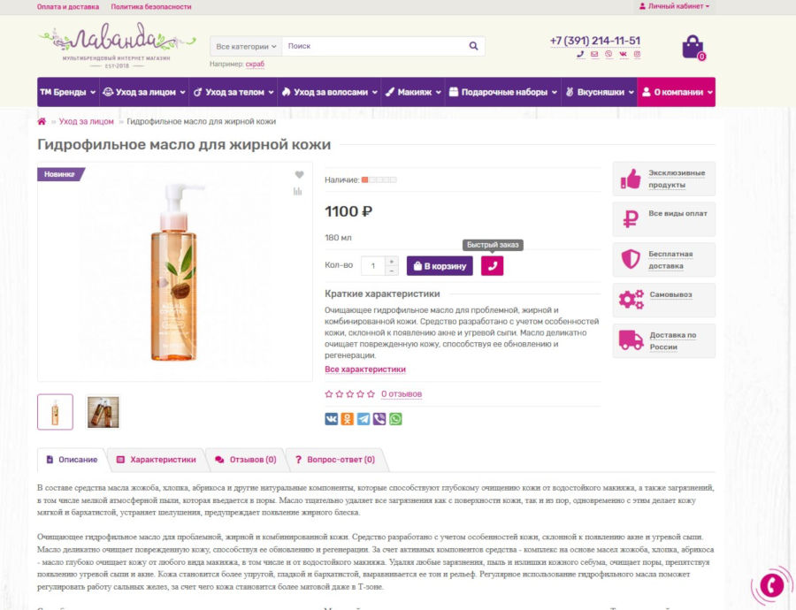 Сайт был сделан на CMS OpenCart.